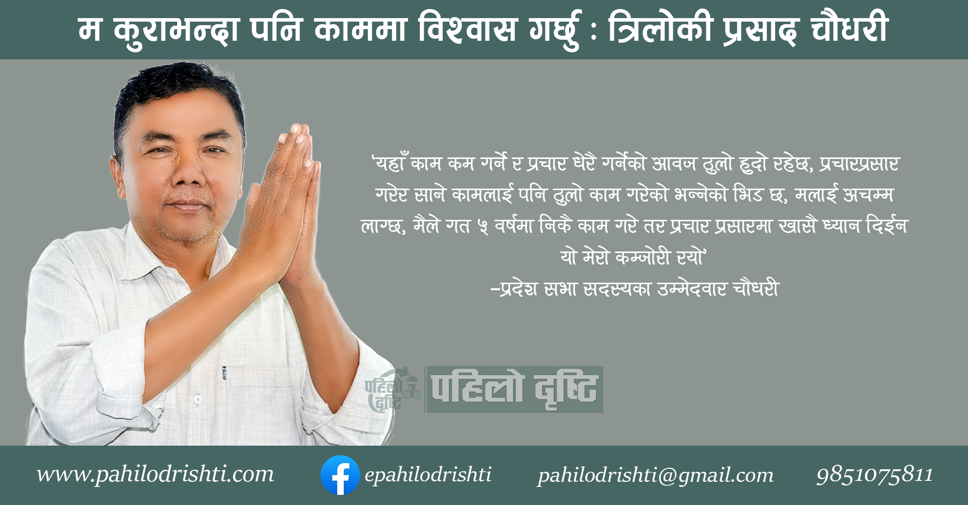 एकजना प्रबुद्ध पुरुषले मलाई भनेका थिए, ‘विदेशीहरू हाम्रो संस्कृतिको कति आदर गर्छन् । तीजको बेलामा रातो लुगा लगाएर महिलाहरू मन्दिर जाँदा कति भव्य दृश्य देखिन्छ । कति श्रद्धा गर्दा रहेछन् महिलाहरूले आफ्ना पतिलाई भनेर विदेशीले भन्छन् ।’ उनको कुरा सुनेर मैले भनें, ‘विदेशीलाई एक दिनको रमाइलो होला तर तीजको व्रत बस्ने कुरा त दर्शनसँग जोडिएको छ, जसले नारी जातिलाई अपमान गर्छ । यदि त्यो कुरा विदेशीलाई बुझाउन पाए वा किन पुरुषहरूले चाहिं महिलाको लागि व्रत बस्दैनन् भनेर ती विदेशीले सोधे भने के भन्नुहुन्छ ?’ मेरो कुरा सुनेर ती प्रबुद्ध नागरिक चुप भए ।